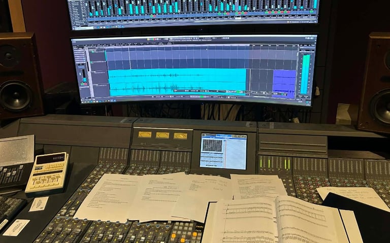 Vid mix arbetar vi även med partitur. Det hjälper oss att få en tydlig överblick över låtens struktur, dynamik och detaljer i varje stämma. Genom att läsa notbilden kan vi fatta mer precisa beslut kring balans, uttryck och helhet i produktionen.